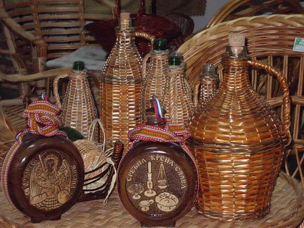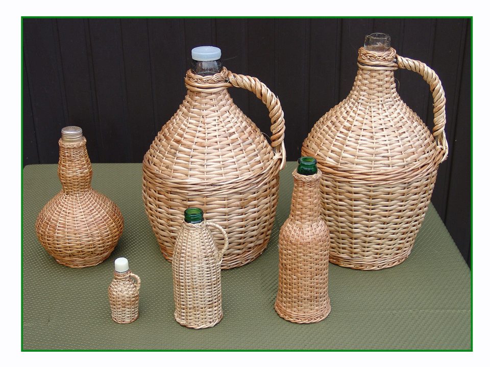 Pletene flase od 0,75 i manje , pleteni baloni od 5 litara.