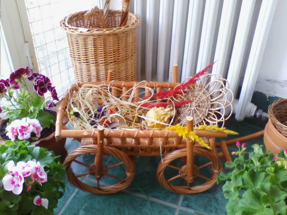 Pletena korpa za sest flasa i ukrasni drzac za flase u obliku gondole.