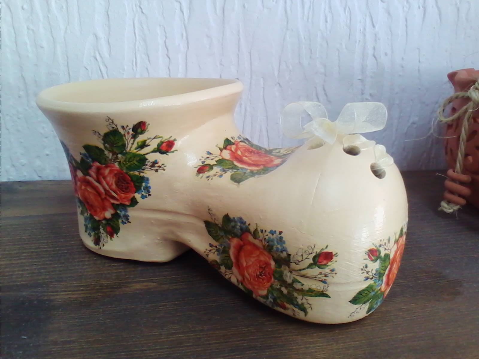 Ukrasna kutija od terakote za bombone u obliku srca i cipelica za cvece.